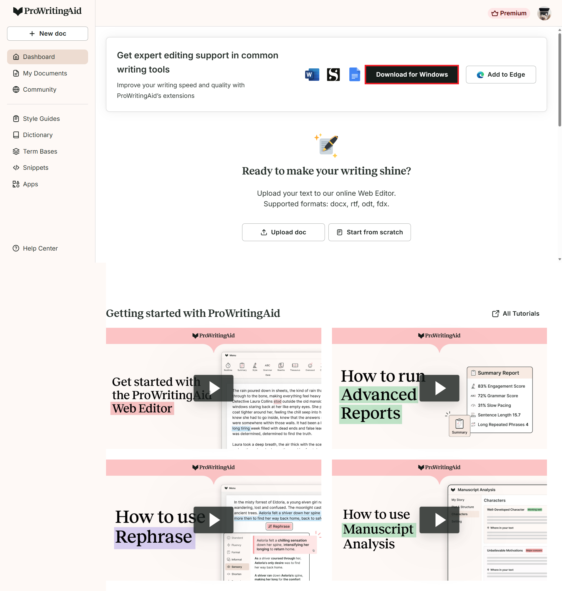 To get the most out of ProWritingAid Everywhere, subscribe to Premium or Premium Pro.