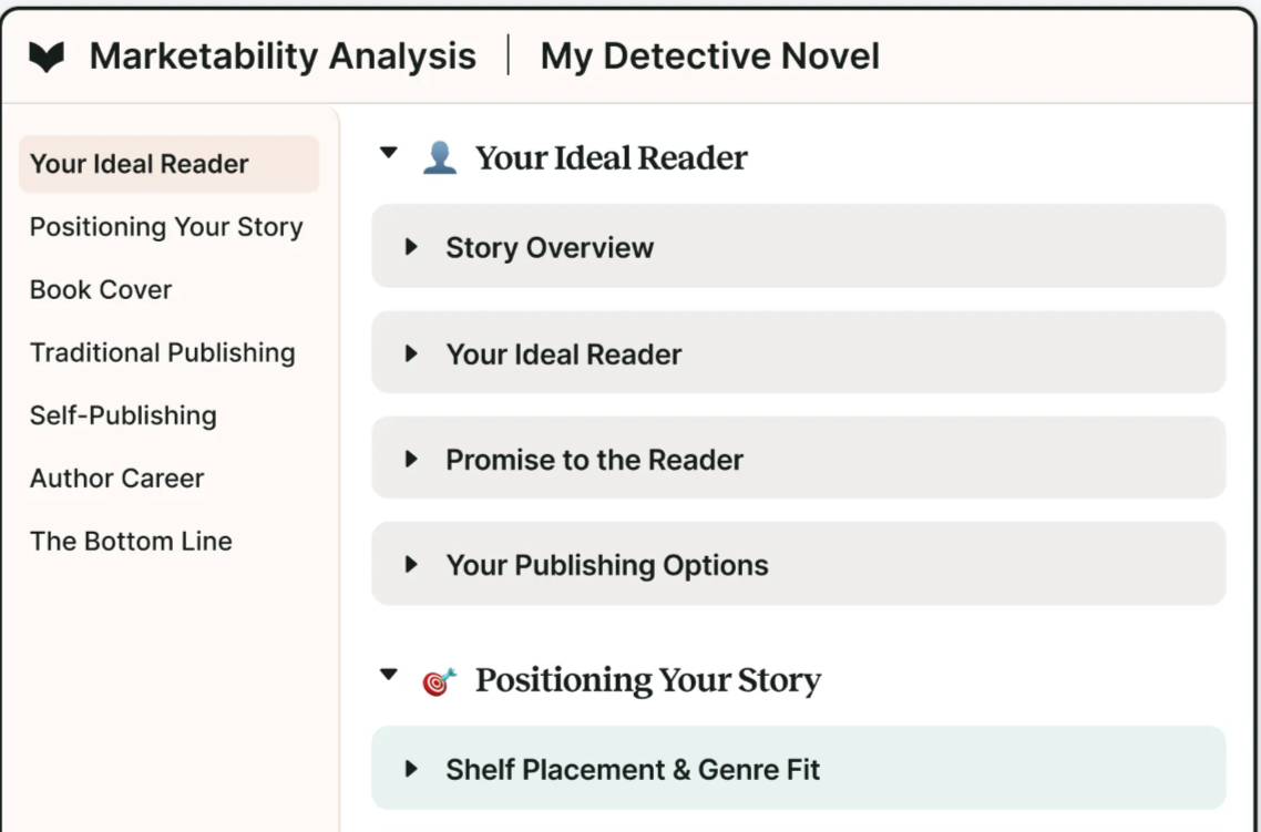 Marketability Analysis is an on-demand report that gives you instant insights, plans, and resources to help you market and publish your book.