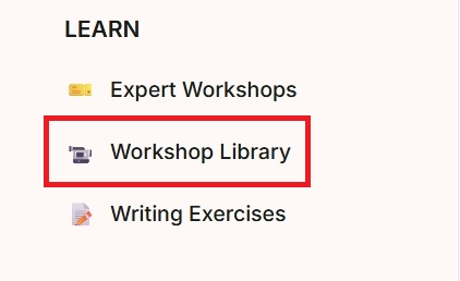 The “Workshop Library” page will open on the right-hand side. Scroll down to see all the prerecorded video workshops you can watch at any time. You can also filter the videos according to genre and video type.