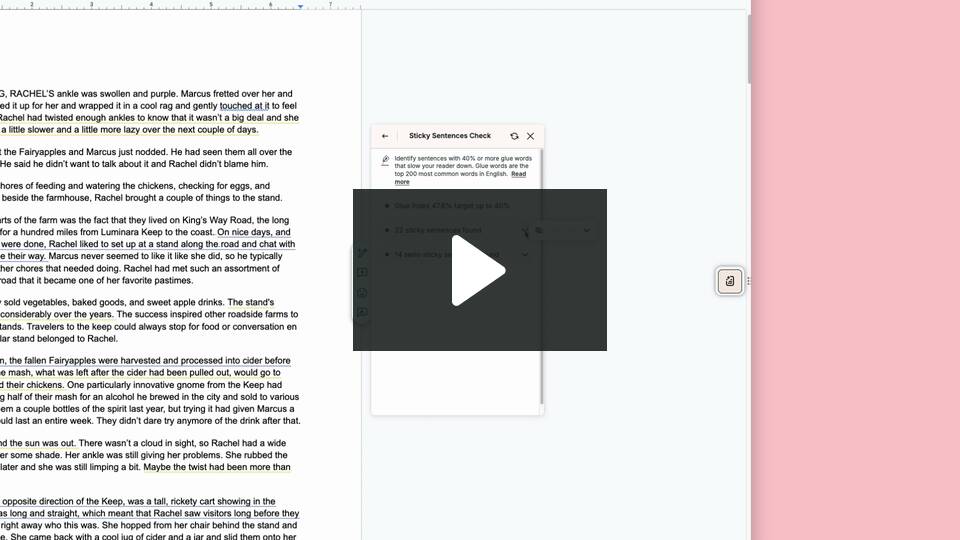 - Edit the sentences yourself. Click in the sidebar to jump to each sticky sentence. Hover over the sentence to see which glue words you could remove.