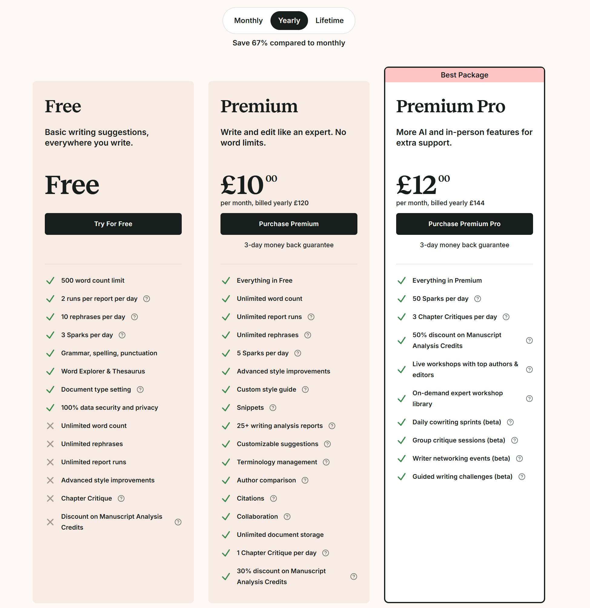 No matter which plan you choose, ProWritingAid is here to support your writing journey.